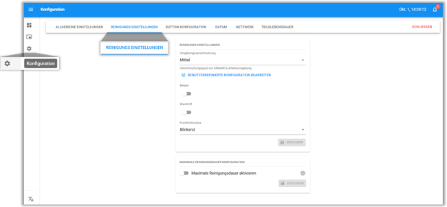- Wählen Sie Konfiguration > Reinigungs einstellungen.